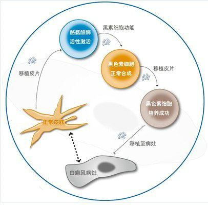 无创高效治疗,可一次性大面积种植。克服传统黑色素种植技术患者创伤大、恢复慢、治疗不彻底等等弊端,它有效的改进了手术的方法,治疗的过程,打破了传统黑色素细胞种植只适用于小面积平坦部位白斑的定论,对一些毛发部位、四肢、口周、生殖器等一些特殊部位的黑色素细胞种植国际领先。