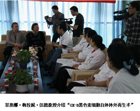 2012年4月,烧伤康复与创面修复国际学术研讨会在渝召开,与会专家澳大利亚佩思皇家医院烧伤中心教授菲奥娜·梅拉妮·伍德(Fiona Melanie Wood)、北京协和医院刘志飞教授、携中澳细胞移植与培养技术到广州新世纪白癜风防治研究院指导白癜风治疗,菲奥娜·梅拉妮·伍德(Fiona Melanie Wood)教授将专利发明细胞培养技术及皮肤移植技术授权与该院。