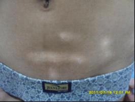 下腹部: 2011年12月28日复诊,患者膝盖、腹部等多处的白斑已经明显减淡变色,有大量黑色素生成。