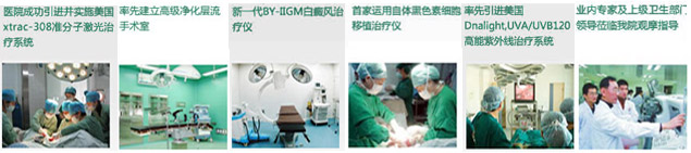 本院重视高、精、尖现代化医疗设备、技术的引进及应用,巨资引进了大批国际顶级设备,拥有包括美国308准分子激光治疗仪、德国伍德诊断灯等在内的国际权威白癜风高新诊疗设备,为白癜风科研、临床提供了科学、准确的诊断依据和有力的诊疗保障,在各种白癜风的诊断治疗上处于同行领先地位。本院拥有国际先进全面的检测系统,可全方位扫描皮肤组织、精确探查白癜风病因,为各种难治性白癜风提供详细的术前评估报告,确保了白癜风治疗的规范性、专业性和安全性。点击了解》》》白癜风如何诊断《《《
