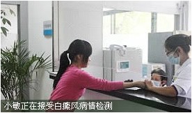 随行的广州新世纪白癜风防治研究院雷主任在详细查看小敏的病情之后,根据多年的经验给出了初步的诊断,小敏患上了散发性白癜风。医生告诉小敏,不要放弃治疗的希望,同时建议小敏及时接受医院的进一步检查及公益爱心治疗。