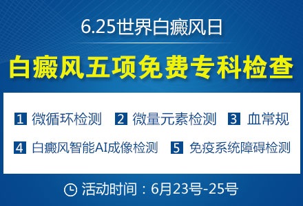 调查显示,那些被误诊的白斑患者当中,多半是由于医疗条件落后或健康意识薄弱而未经过全面、正规的检查,便盲目用药和治疗。而误诊导致误治,给患者造成了严重的不良后果,为此,广州市青少年发展基金会联合广州新世纪白癜风医院特开展“世界白癜风日公益普查活动”,2017年6月23日-2017年6月25日期间推出五项白癜风专科免费检查,帮助更多患者早期发现白癜风,早期诊断早期治疗,避免漏诊误诊。