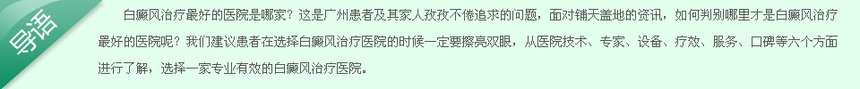 广州新世纪:本着“病人至上,情在交流,视病人是亲人”的服务宗旨,始终追求人性化的优质服务,采用国际先进的管理模式和服务理念,将各项服务细节做到实处:响应卫生部号召,率先在当地业内开通“在线专家咨询、在线预约挂号”系统,开展全程导医陪同就诊服务,实行一对一亲诊服务,广州首设儿童白癜风治疗绿色通道,等等,赢得广大患者的好评如潮。