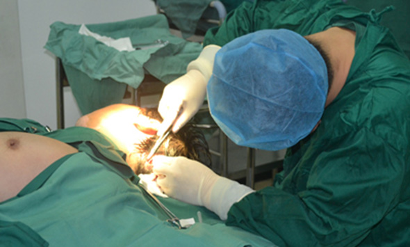3.局部麻醉患病部位,磨削治疗区域直到出现点状出血